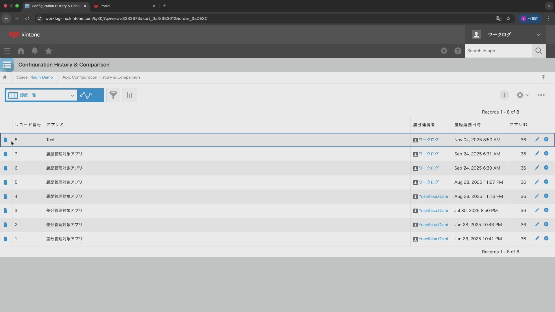 You can easily compare any two records to see what has changed in the app's settings over time, all within the kintone interface.
